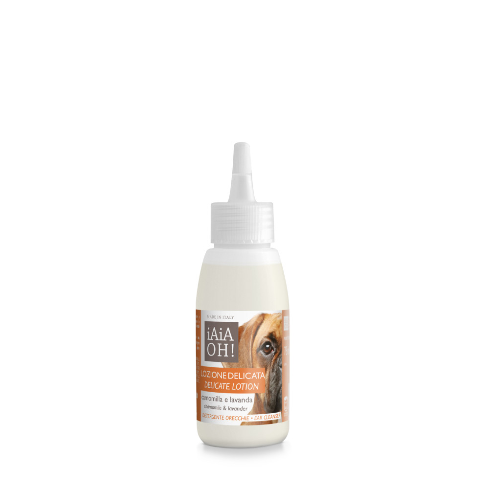 La Lozione Delicata ha proprietà lenitive ed emollienti, ideale per la detersione quotidiana e per lenire eventuali arrossamenti nelle orecchie del cane.